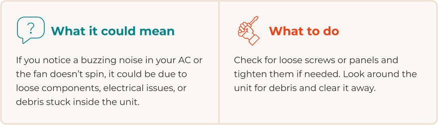 AC systems are supposed to hum along quietly in the background, keeping you cool and comfortable. But when your AC starts making a buzzing sound— or other unusual noises— it’s often a cry for help. Here’s a breakdown of common AC sounds, what they might mean, and quick tips for tackling them.