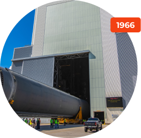 1966 marked the completion of the Guinness World Record-holder for largest doors: the doors to NASA’s Vehicle Assembly Building in Cape Canaveral, Florida.